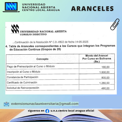 De acuerdo a la Resolución N° C.D. - 0922 de fecha 14-05-2025, la Tabla de Aranceles correspondiente a los Cursos que integran los Programas de Educación Continua son: